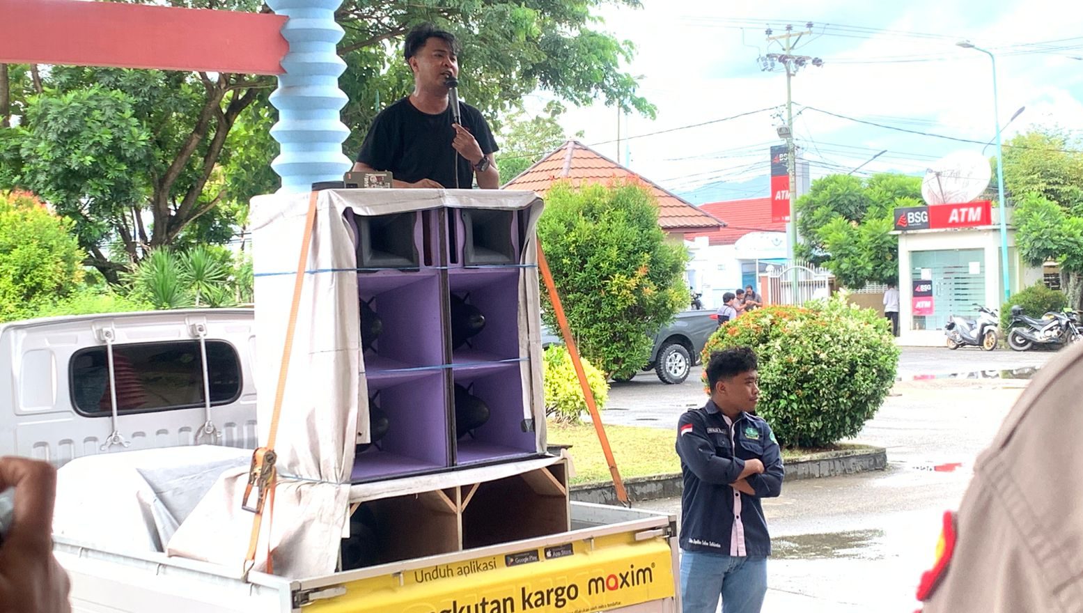 “Tetapi sangat disayangkan bahwa ada beberapa para pekerja, upah mereka, upah para pekerja buruh yang kemudian belum dibayarkan oleh kontraktor itu sendiri, setara seratus juta sekalian. Dan yang kedua terkait persoalan bahan material untuk pembangunan restoran Mie Gacoan itu sendiri,” tegas Lion Paneo dalam orasinya.