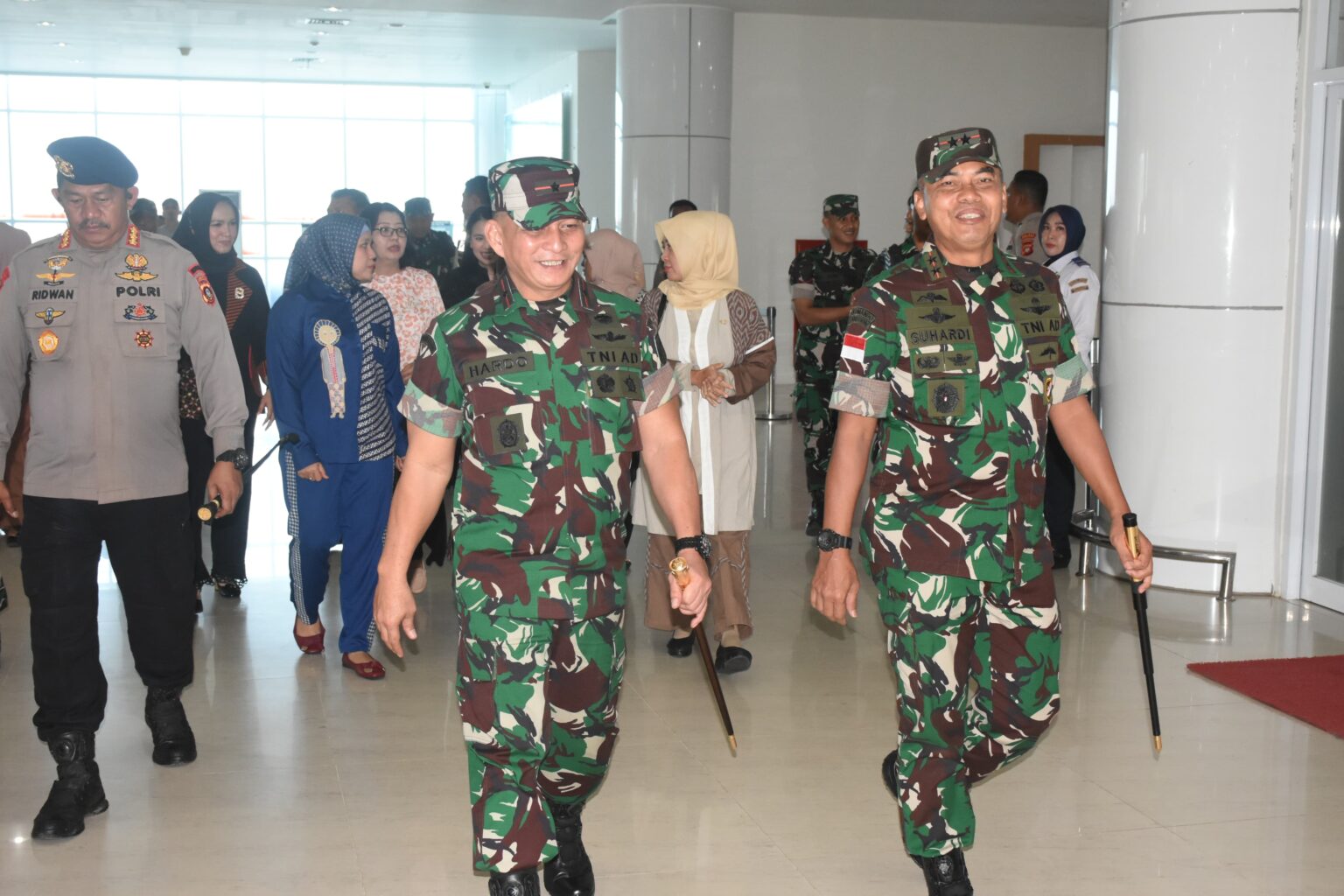 Turut hadir menyambut kedatangan Pangdam XIII/Merdeka di Bandara Djalaludin Gorontalo Kasrem 133/NW Kolonel Inf Jaelan, S.I.P., M.Han., Para Kasi Korem 133/NW, Danbrigif 22/OM Kolonel Inf Arianto Maskare Subagio, S.Sos., M.Si., Dansat Brimob Polda Gorontalo Kombes Pol. Muhammad Ridwan S.I.K., Kapolres Gorontalo AKBP Ki Ide Bagus Tri, S.I.K., Wakil Ketua Persit KCK Koorcab Korem 133 PD XIII/MDK Ny. Cahyani Jaelan beserta para pengurus, Ketua Persit KCK Cab LVI Brigif 22 Ny. Riska Melia Arianto, Ketua Persit KCK Cab. LXXI Dim 1314/Gorut Ny. Pretty Rayner.